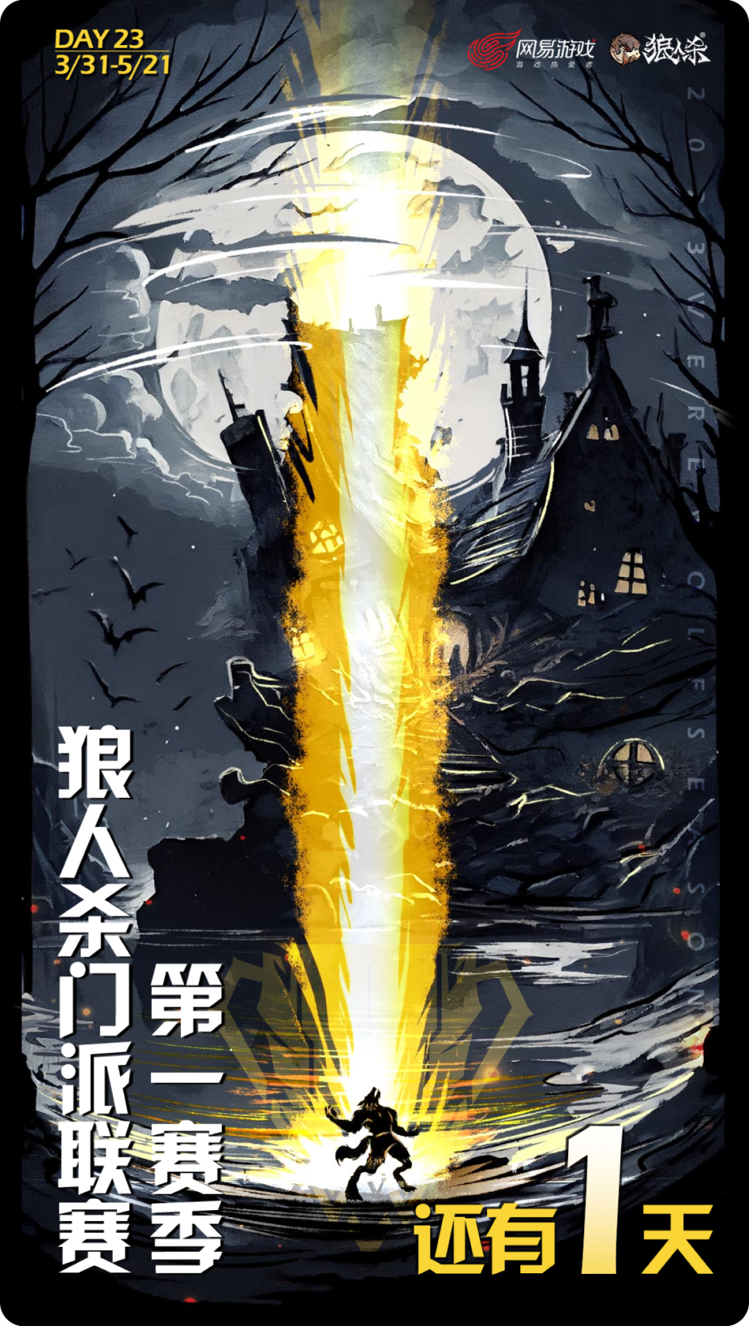 设计团队接到狼人杀游戏赛事的 3 张倒计时天数海报。