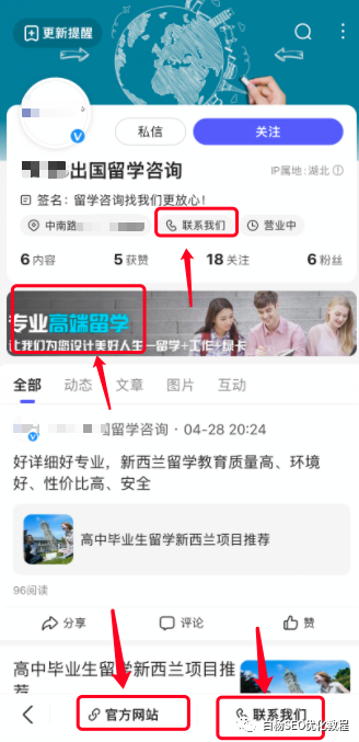 其实认证过后,在企业百家号主业上不仅可以留联系方式,直接可以挂网站,第三方链接,这个够直接了吧。
