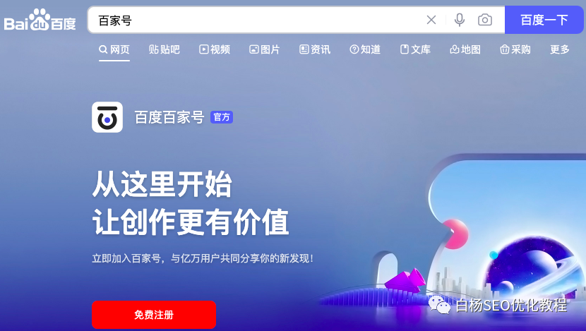 百家号 SEO 排名好处是:收录快、排名快 、 移端端可占位 ( 企业蓝 V 认证 )、 排名长久。