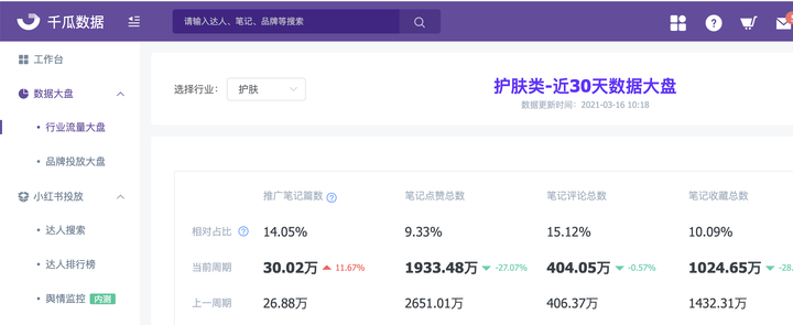 小红书目前用户数超过 3 亿,90 后用户占比超过 70%,女性用户占比超过 80%,这些都是做内容社交电商的独特优势,毕竟女性和 90 后才是互联网的主流用户人群和消费人群。具体行业数据可以在千瓜数据查看。