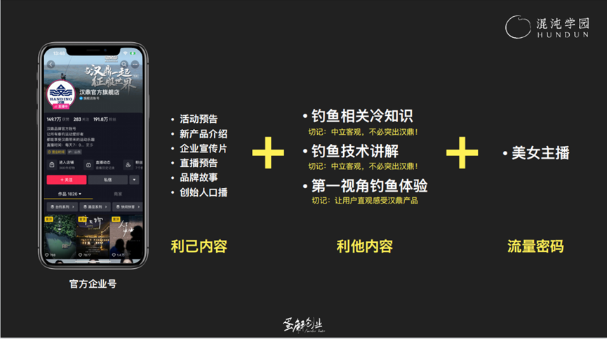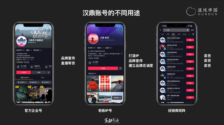 第二类,老板 IP 号汉鼎黑哥,用于品牌宣传,打造忠诚度。
