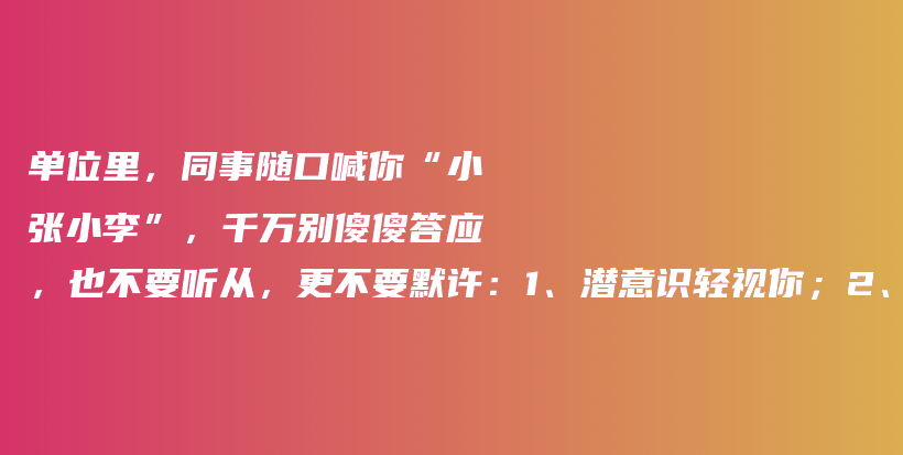 你可能已经习惯了被同事随口喊作“小张小李”,觉得这只是同事间的亲昵和随意。