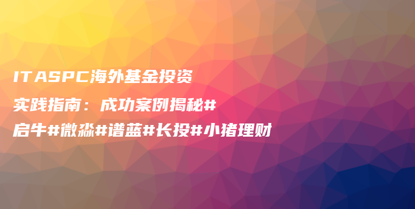 综上所述,在 ITASPC 海外基金投资实践指南中所呈现的内容丰富多彩、见解独到。作为一名专业人士,在阅读和分析这些内容时应保持客观、理性,并结合自身情况做出正确判断。期待更多优秀案例和深度解读能够帮助广大投资者在未来取得更大成功!